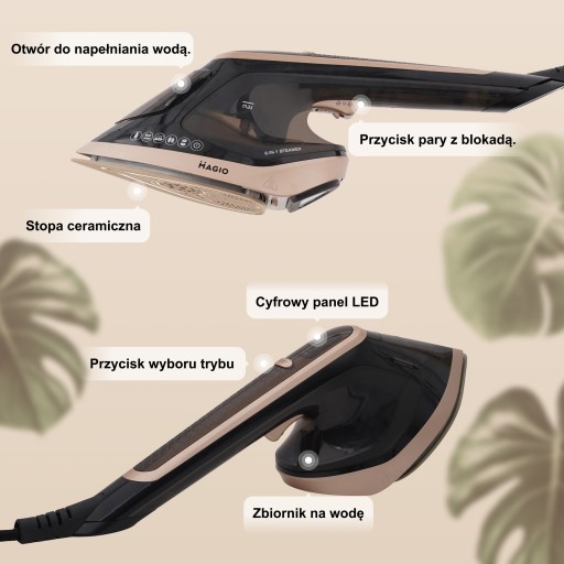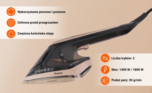 Parownica i Żelazko 2w1 MAGIO 1800W, LED, Regulacja pary, Steamer do ubrań