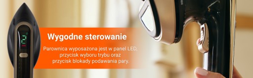 Panel LED do wyboru trybu pary — pokazuje poziom nagrzania i wybrany tryb, zapewniając bezpieczne prasowanie bez przypaleń i połysku.