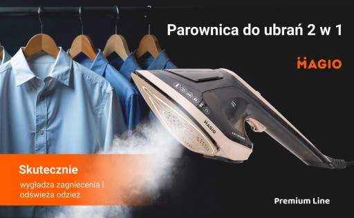 Odkryj profesjonalną pielęgnację odzieży z MAGIO 2 w 1 —parownicą do ubrań i żelazkiem parowym. To praktyczne rozwiązanie łączy zalety ręcznej parownicy i tradycyjnego żelazka.