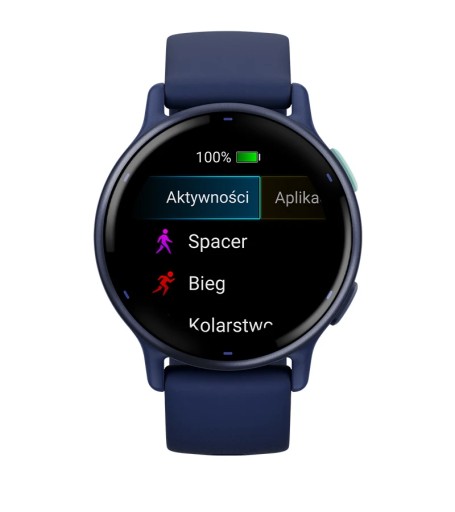 Śledź każdy swój ruch z pomocą ponad 30 wgranych aplikacji sportowych GPS i aplikacji do aktywności w pomieszczeniach — obejmuje to m.in. spacery, bieganie, jazdę na rowerze, pływanie w basenie, aktywności dla użytkowników wózków inwalidzkich i wiele innych.